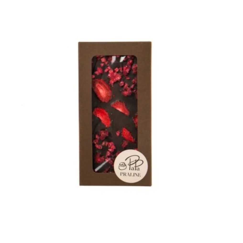 Hořká čokoláda s lyofilizovanými jahodami a malinami
