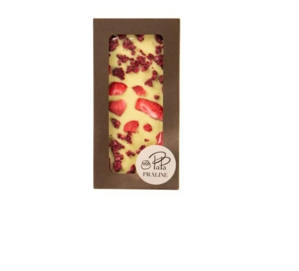 Bílá čokoláda s lyofilizovanými jahodami a malinami